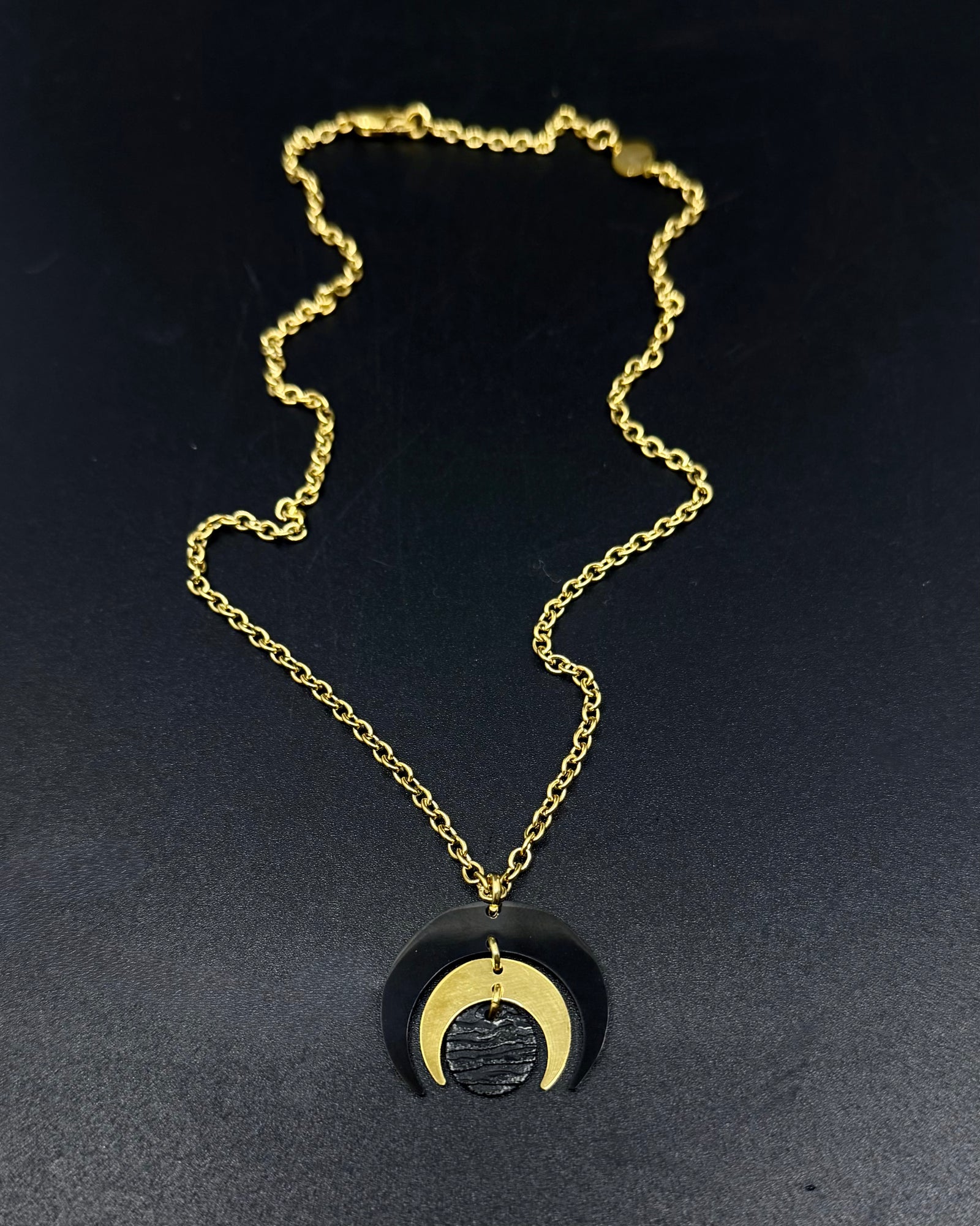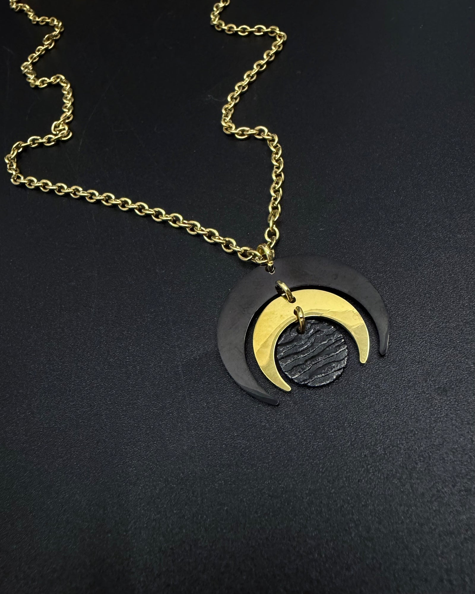 €150,00Luna Phase Toggle Necklace - 30mm Black / Gold