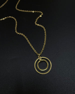 The Cassini Align Necklace is unity made visible — two interlocking gold rings suspended in quiet balance, bound together in an endless orbit. Minimal in form yet rich in meaning, it speaks to connection, continuity, and the calm pull of alignment.