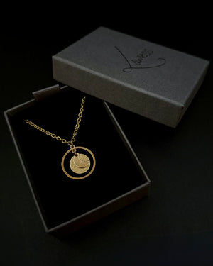 The Urania Reversible Moon & Star Necklace in all gold is a celestial shapeshifter - designed to shift with your mood, your orbit, and your intention. One side the Moon, the other a Star - two looks in one necklace, each glowing with polished lunar-solar energy.