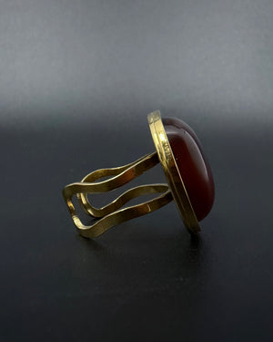 Domed carnelian cabochon · adjustable fit · statement scale · hypoallergenic · tarnish-resistant