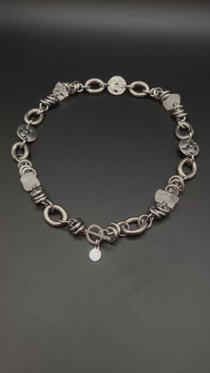 Clarity, Strength, Stillness before the strike - the Nebulae Lumen Necklace is forged from polished steel and cooled intention. Clear quartz threaded between silver-toned links creates a piece that doesn’t distract, it defines.