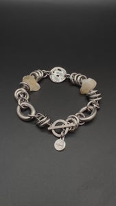 Features: Substantial stainless steel link chain · secure toggle clasp · raw natural stones · hypoallergenic + tarnish-resistant
