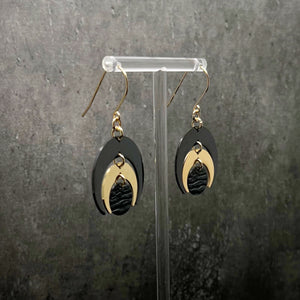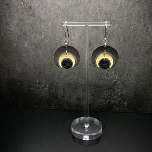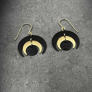 A bolder evolution of the Luna Phase design, these earrings magnify the lunar rhythm in sculptural form. Gold-plated and black stainless steel crescents orbit a darkened textured disc, creating movement. Made for those who like their symbolism a little louder, their edges a little sharper.